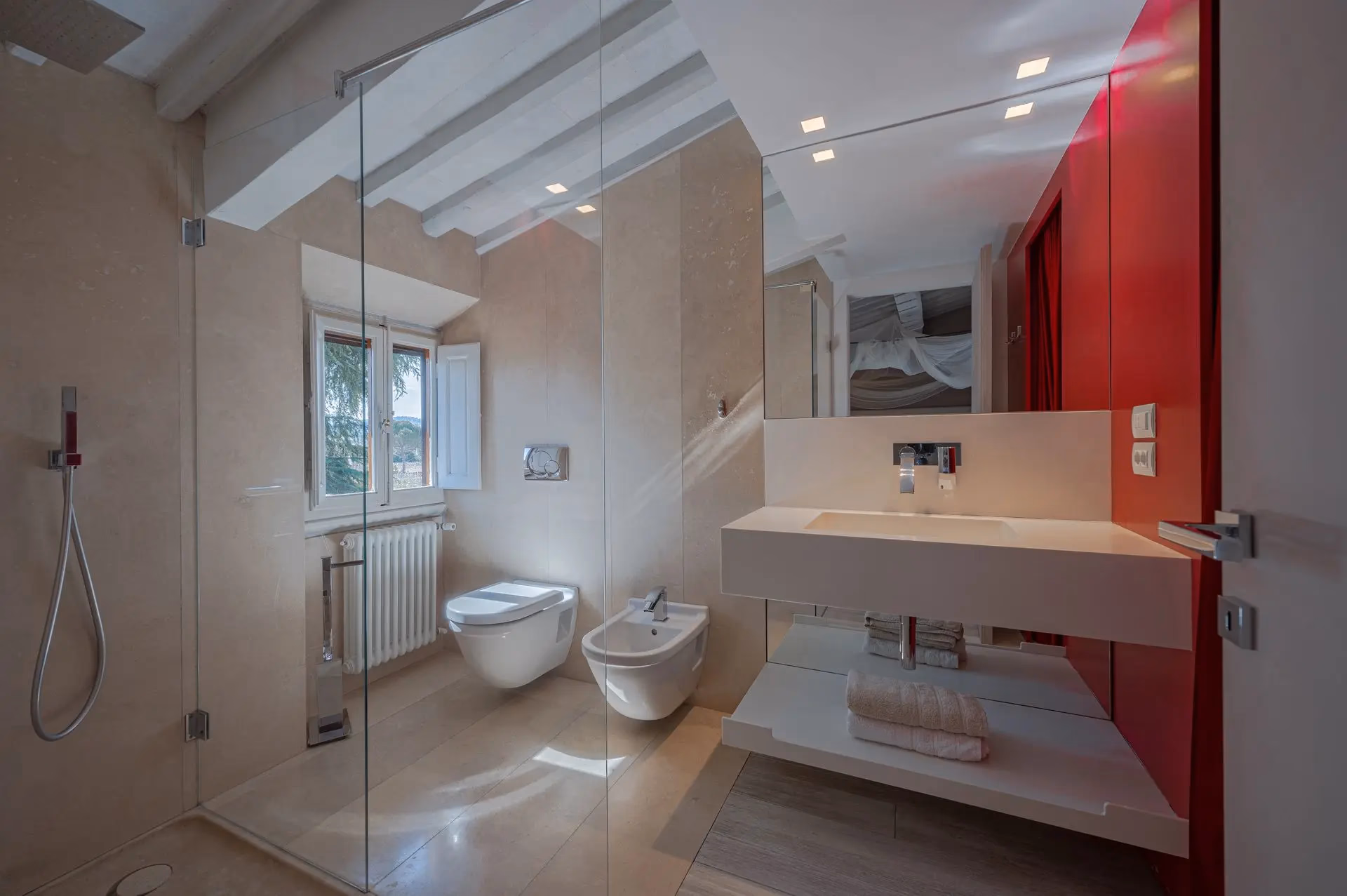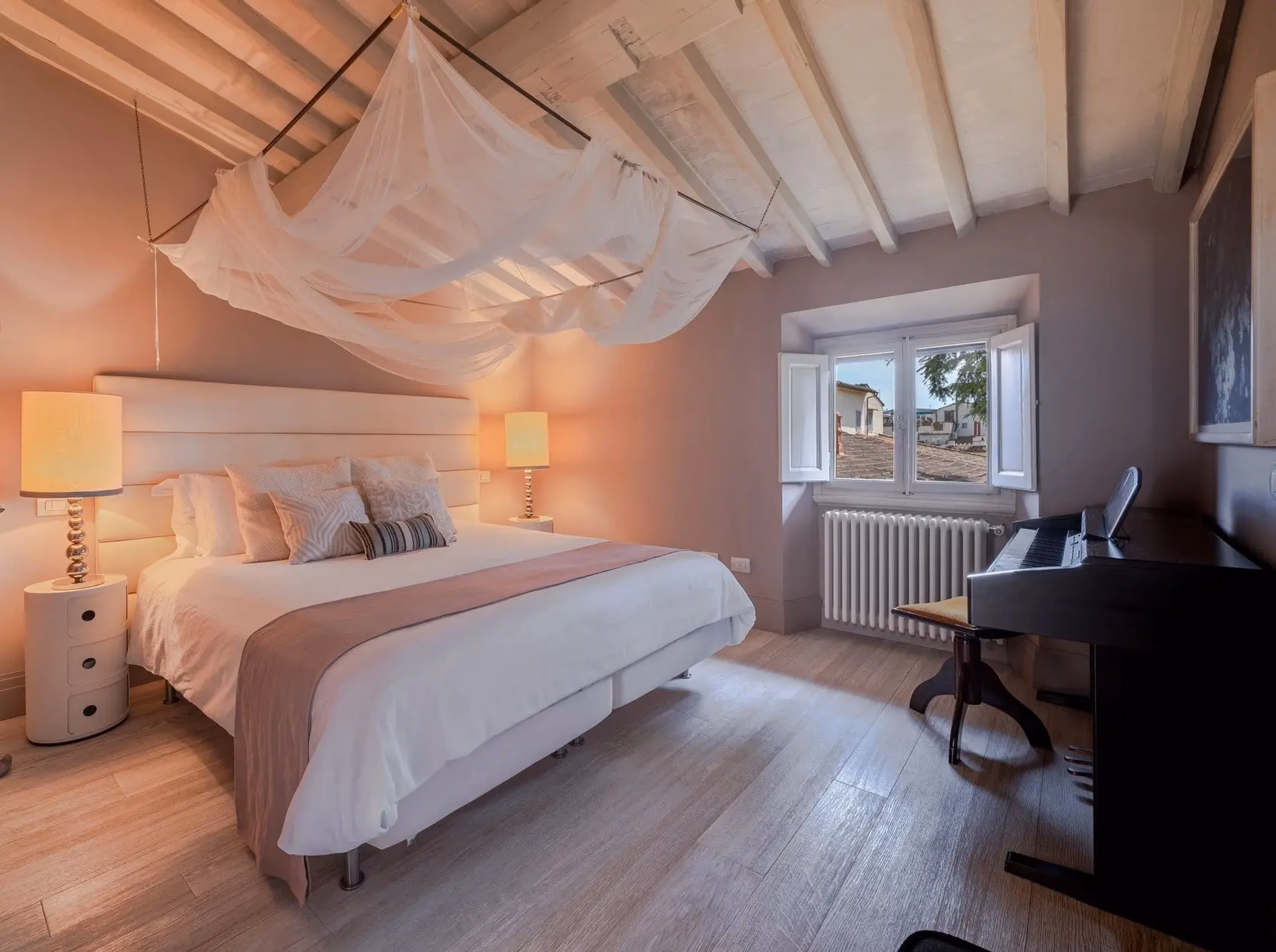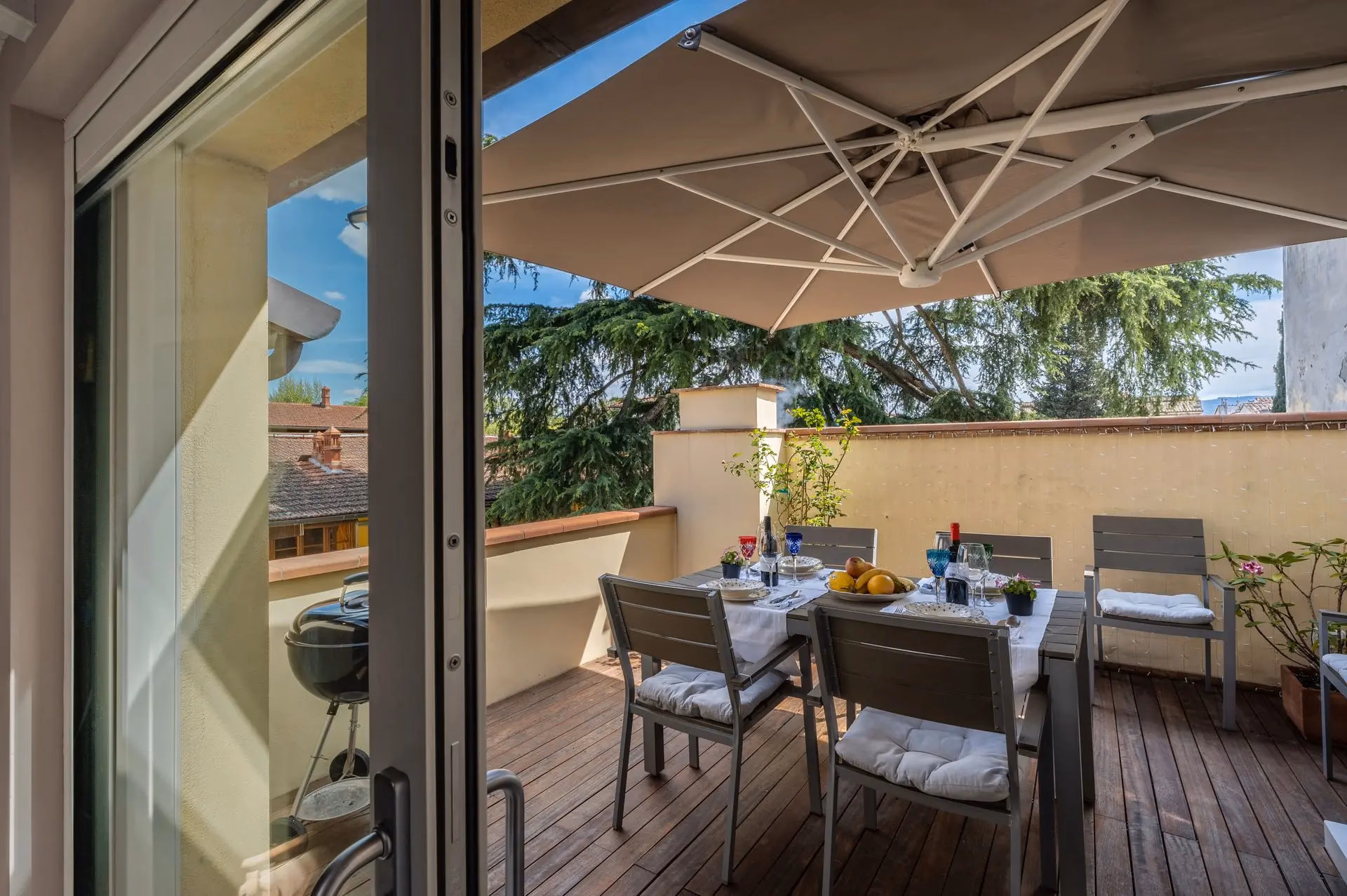 Refurbished with tailored furniture, featuring one patio in front of the kitchen and one rooftop terrace with a 360° view of the city and the Florentine hills.